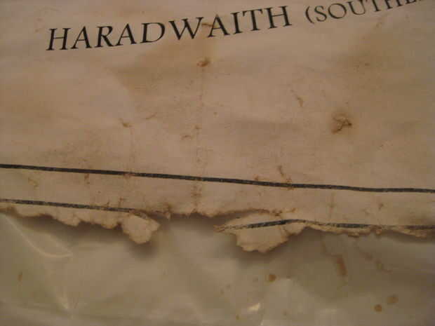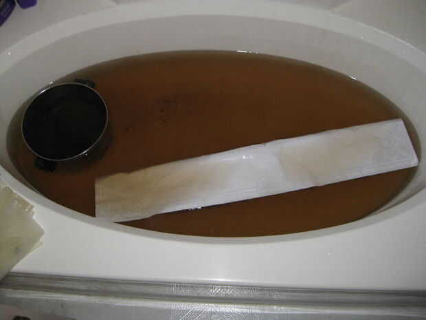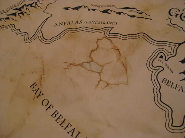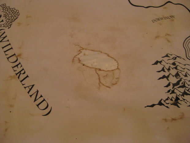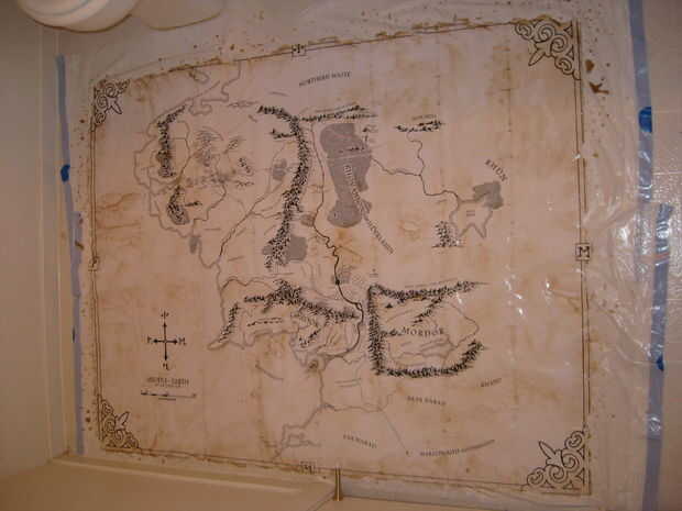 Una vez tuve mi impresión, yo había preparado un baño caliente y lanzó en seis 6 bolsas de té negro y dejarla empapar por unos 10 minutos. Después de remojo por eso mucho tiempo, tomé mi mapa y lo colocó, rodadas para arriba, en el baño y dejarlo sentarse allí en el baño de té durante 15 minutos. Me aseguré de empuje hacia abajo en el mapa cada par de minutos para asegurarme de que la broca de centrar se té en él puesto que mantuvo aparente levantándose en el centro. Como el mapa me empuja hacia abajo, hice algunas pequeñas rasgaduras en el mapa y agregado así a los algunas de las características de apariencia del mapa. También me frota a lo largo de los bordes para crear los bordes rotos. La única arista que no copio fue el uno en el centro el rollo pero una vez saqué el mapa fuera de la bañera, lo desenrolló y frota el borde para crear la imagen desgarrada. He puesto el mapa en dos bolsas de basura que había abierto y mentido en el piso, para evitar tanto el té en el mapa y no en el suelo. El mapa fue secado en el piso de mi baño, frotó dos agujeros adicionales en el mapa como hizo algunas pequeñas rasgaduras en el mapa también. Luego tomó el té en bolsitas en el baño y les aplicó a lo largo de los bordes y a lo largo de los RIP. El pensamiento de esto era que las fibras rotas en los bordes expuestos en el documento absorberían el té extra y podría causar el oscurecimiento de los bordes. Funcionó bastante bien y estoy bastante contento con el resultado. Había dejado el mapa en el cuarto de baño con los ventiladores en para la mayor parte del día y se deja secar al aire. Si tuvieras un horno enorme podría cocer a fuego lento pero no tengo un horno que tiene un estante de 3'x 4'.