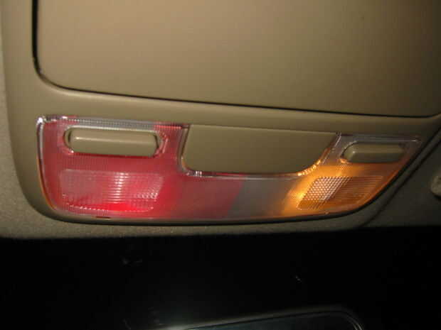 una forma barata de tener una opción de luz roja para uno de sus luces de mapa en su coche sin necesidad de cambiar las bombillas. Ir a comprar algunos cinta reparación luz de cola roja en el local centro comercial tipo almacén o automotriz. Yo sé, esto es fácil, pero es mucho más práctico que encontrar bombillas de repuesto rojo para su coche o pintar las bombillas existentes.
