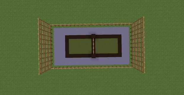en primer lugar tomar tus bloques verdes y hacer con ellos 2 4 X 6 áreas y entre ellas colocar una línea de bloques de negro.
