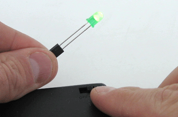 4. Mueva el interruptor de la batería a la posición ON. Debe encenderse el LED, como se muestra en la figura abajo si no se enciende, Compruebe la polaridad.