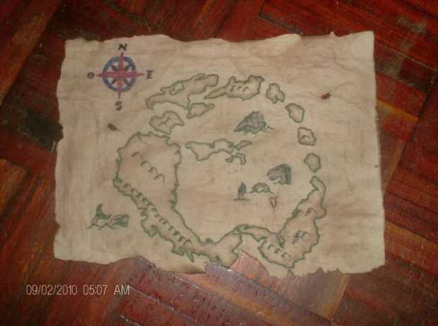 Con cuidado quema los bordes del mapa y tal vez algunos agujeros para que sea más real.