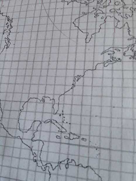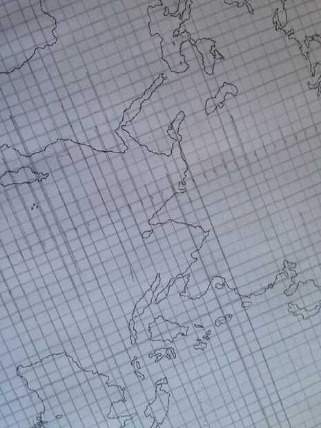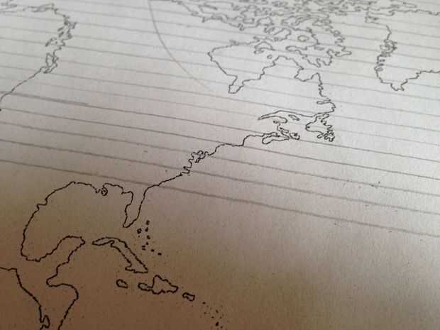 En primer lugar usted necesita imprimir un mapa del mundo. Lo imprimí en formato a4, y luego copian en formato a3. Puede trazar las líneas para hacer puntos fáciles de dibujar. Lo hice por 0,5 cm.