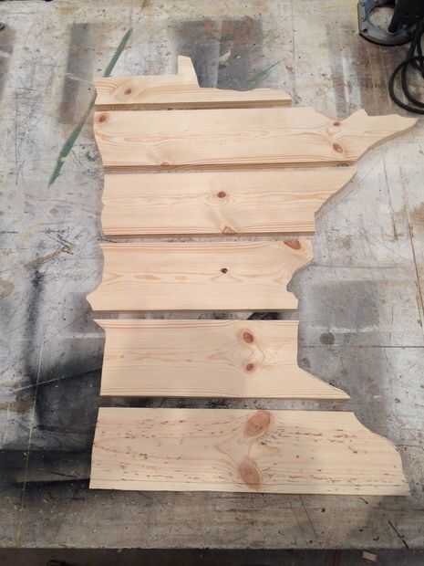Entonces saque el juego y empezar a cortar la forma. Yo uso un 10 dientes por pulgada inversa corte blade. Aquí está lo que aprendí después de la primera. Es más fácil cortar las piezas más grandes, luego cortar a las líneas. Luego usé una lijadora excentrica a la arena. Empecé con un grano 60 en los lados que corté. Luego grano a120.