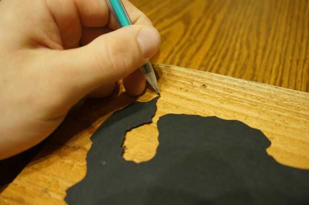 Empecé en las esquinas de cada diseño, así que podía estar seguro de que las esquinas bien definidas del Texas panhandle, etc. se muestran más adelante. También comentar el espacio, colocando más clavos alrededor de curvas o puntos que quería ser más definido. Puede utilizar una regla para obtener el espacio exacto entre los clavos si se desea.