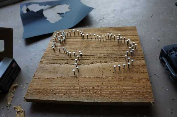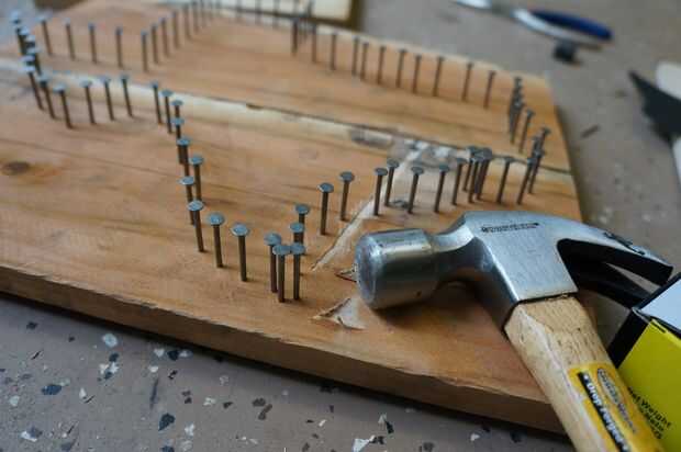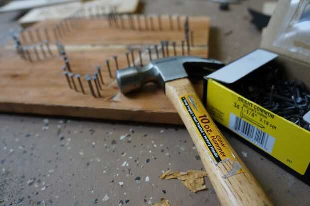 Usando el martillo, comience a conducir sus clavos en los orificios piloto. Secuencialmente su forma alrededor del perímetro de la forma de trabajo---no importa si se mueve hacia la derecha o hacia la izquierda. Si hay cualquier forma interior Asegúrese de les uñas primero. Este enfoque debe contribuir a que tengan acceso abierto a cada clavo y ayuda en el mantenimiento de la alineación vertical uniforme de las cabezas de los clavos.