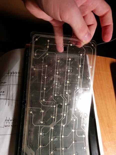 Teclados de membrana trabajan usando una matriz de interruptores abiertos. Cada vez que pulse una tecla, presiona una cúpula pequeña de goma. Cuando esta cúpula es aplastada, presiona hacia abajo sobre la membrana. Cada punto con una clave tiene esta cúpula, y además la membrana tiene un pequeño hueco dentro. Como se ve en la primera imagen, hay algunas capas de la membrana. Cuando se presiona la tecla, la capa superior y la capa inferior consiguen juntar, cierre el interruptor. Cuando el teclado ve a que estos dos contactos han tocado, sabe que tecla fue presionada.