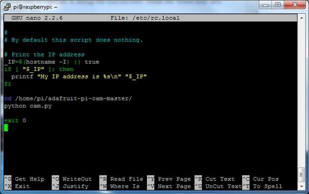 Si desean hacer las frambuesa Pi inicie termine en modo camara puede editar el archivo /etc/rc.local como se muestra en la ultima imagen.
