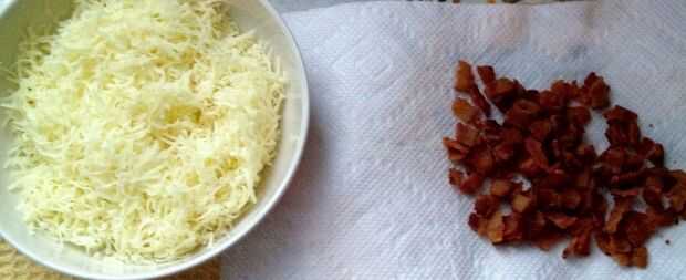 Cocine el tocino en una sartén mediana a fuego medio hasta que es curruscante. Transferir a un plato forrado de toalla de papel. Vierta con cuidado la grasa de tocino reservado en Bol apto para congelador y congelar (mina estuvo en congelador durante 15 minutos mientras que había preparado otros ingredientes).