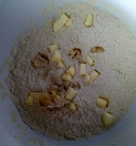 Añadir el bacon y el queso rallado y utilizar cortador de pasteles para combinar.
