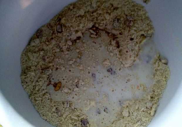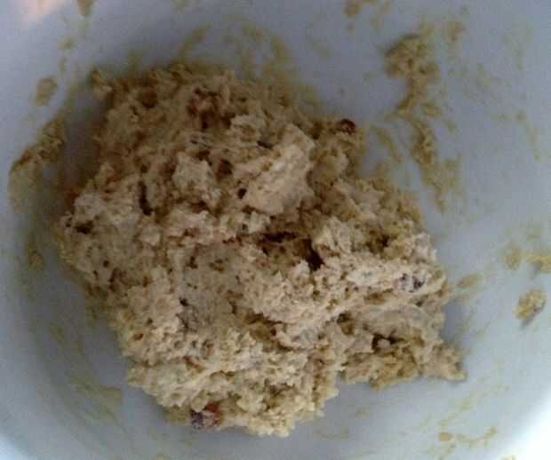 Añadir el jarabe de arce, suero de leche y la leche (reserva un par de cucharadas de leche y añadir sólo si la mezcla está seca, no necesitaba todos de 1/3 taza de leche.), use una espátula para mezclar hasta que la pasta sale de los lados del tazón de fuente, no sobre mezcla.