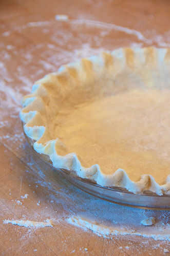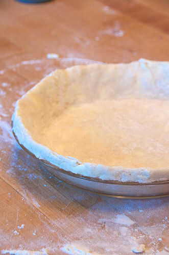 Finalmente, usted querrá "muelle" de la corteza a vapor salir mientras hornea y para evitar que se forman entre la corteza y la placa de burbujas. Utilice un tenedor para empujar el fondo y los lados de la corteza de algunas decenas de veces. Vuelva a colocar la tartera con la corteza formada, acoplada en la nevera para reafirmar un poco mientras se precalienta el horno a 400° F, con estantes en las posiciones inferiores medios y superiores.
