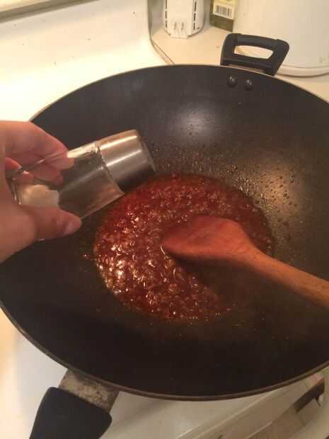 A continuación, añadir 2 cucharaditas de sal y 1 cucharada de salsa de soja. Mezclar bien.
