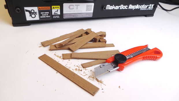 Para la velocidad y sencillez elegimos no hacer un perfil personalizado con la mayor contracción. En su lugar simplemente aceptamos los bits de fibrosos y de cortar con un cuchillo afilado.