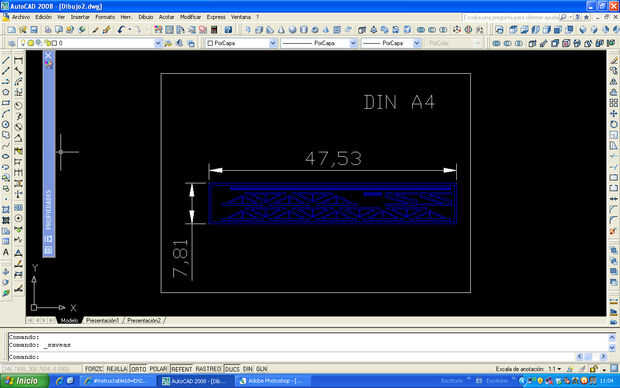 D - Escalaremos la matriz para nos quede a la escala deseada (cada de maestrillo tiene librillo de su...) Yo dibujado un dina A4 y lo escalado para la relación con la matriz mar permiso de 1/200. El dibujar un DIN A4, lo hacemos para utilizar un tamaño reconocible para la impresora.