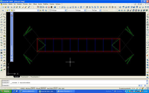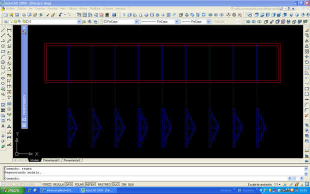 1 - Comenzaremos dibujando la base donde se apoyarán las la cerchas (en ROJO, en la imagen)...