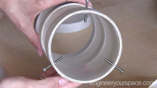 Desde el anillo superior se fijará con tornillos de máquina, es necesario utilizar cinta de doble cara. Coloque el anillo al ras con la parte superior de la cortina y los agujeros de eneldo en la estera para picar. Atornille en su lugar los tornillos (yo usé 4 # 1 1/4" tornillos largos).