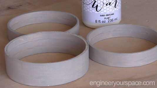 Decidí terminar los anillos con una mancha de madera gris de cuadros, dando un par de capas. Yo deje seco por un par de horas y luego sellado en el acabado con cera blanca, limpiar la cera sobrante con un trapo limpio y sin pelusa.