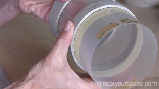 Quité el trazador de líneas de la cinta de doble cara en la costura y formó a la sombra, entonces he quitado el forro para el anillo medio y se lo deslizó en su lugar, repite lo mismo para el anillo inferior.