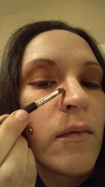 Utilice el pincel más pequeño para sombrear los lados de la nariz, al igual que en el diagrama de contorno. No van demasiado oscuro con esto, o se verá muy poco natural. Y no se olvide de mezclar.