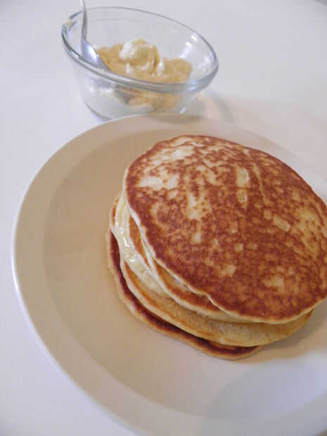 apilar sus panqueques y añadir una cucharada colmada de la mantequilla de arce canela.