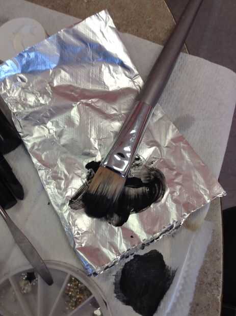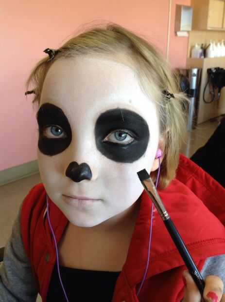 Utiliza el mismo producto, Aquacolor, que usé para el maquillaje de cara blanca. Utilicé un pincel en lugar de uno de mis pinceles de maquillaje ya que este tipo de maquillaje agarra un cepillo de pintura mejor y por lo tanto las manzanas sobre la piel mejor. Puede utilizar una paleta de maquillaje o papel de aluminio para mezclar el producto con unas gotas de agua para hacer el producto playable.