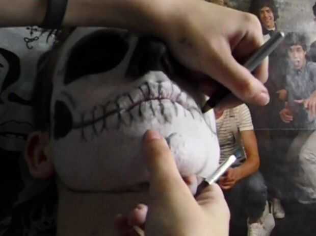 Hola mi nombre es Jennifer.Hoy demostrando cómo pintar una calavera en la cara de alguien. Este es un divertido y fácil buscar festivales y fiestas de Halloween. La pintura de cráneo va bien con un traje de esqueleto pero se puede usar con todo lo q