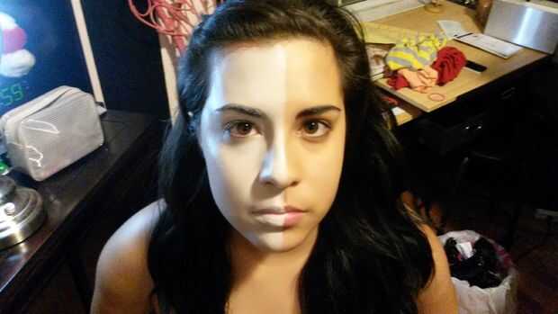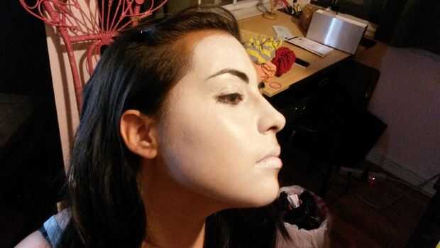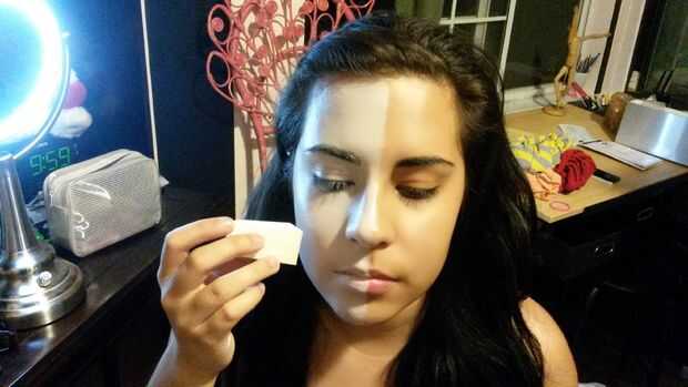 -Tomar una cuña cosmética y aplicar el color blanco de la crema de Ben Nye en la mitad de su cara. Asegúrese de que ligeramente dab y pat la cuña todo el rostro como aplicar el maquillaje blanco. Hacer esto hará que el maquillaje suave no dejando trazos ni manchas en la cara. También evitará la anterior capa de maquillaje de ser eliminado por la aplicación de la nueva capa.