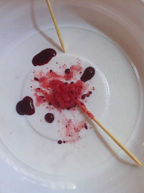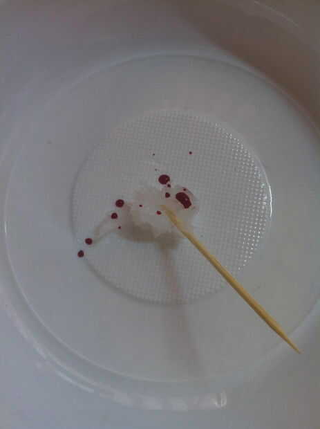 3. Mezcle el material se mezcla con colorante de alimentos y tiene un agradable rosado/rojo pegar.