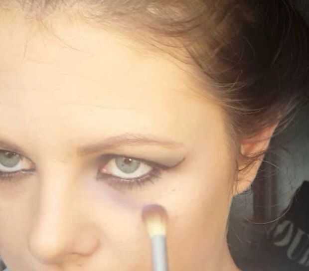 Tutorial de maquillaje de HalloweenPaso 1: cara.1. aplicar una base y 2. polvo3. y 4. Sombras, usar sombra de ojos marrón med, hacer sombras a tus mejillas y narizPaso 2: ojos.5. 6. y 7. Utilizar lápiz de ojos negro y hacer líneas a tus ojosPaso 3: "