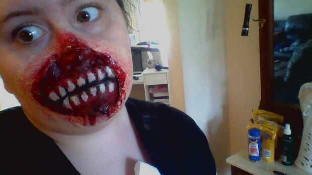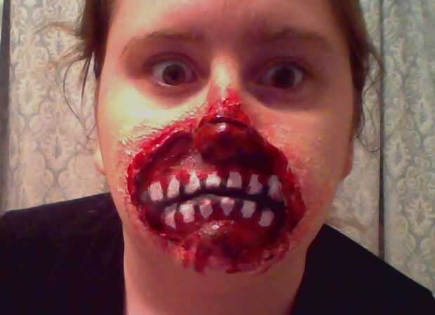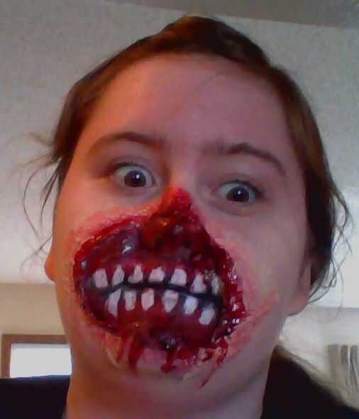 Ahora Mostrar! No se puede mover la boca mucho, pero bueno, ya tienes una cara de miedo. Si quieres que dure más, se puede sellar con spray sellador.