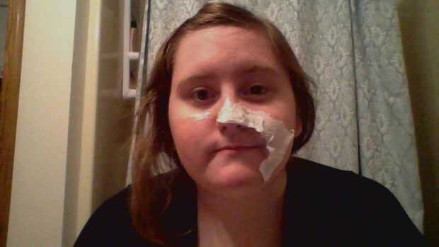 Dar a continuación, su cara otra capa de látex, esta vez permanecer detrás del borde (Recuerde, el borde más lejano debe ser delgado para mezcla). ANTES de que seque, pegue el papel higiénico en. Presione y alísela uniformemente. Luego, deje que se seque.