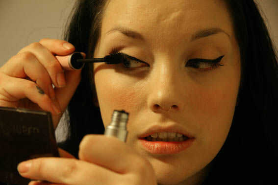 Aplicar el rimel a las interiores y exteriores de las pestañas en ambos ojos. Agitar el tubo como lo haces para maximizar la cobertura y la separación.