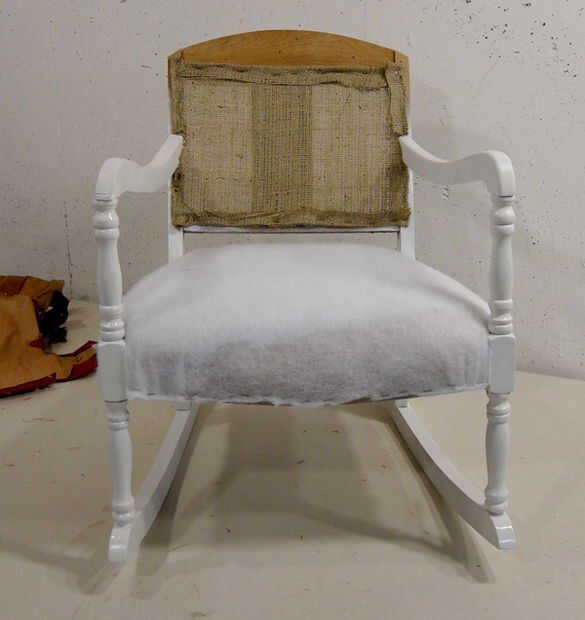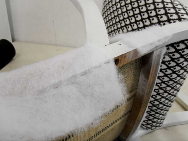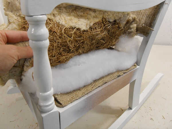 Aquí es donde usted necesita para volver a hacer la base que llevará a cabo el relleno. Necesitará añadir stips de cinta de yute, arpillera, relleno (mullida encima de paja como material de la tapicería antigua), añadir bateo nuevo y una nueva cubierta de dacrón. Entonces estarás listo para tapizar