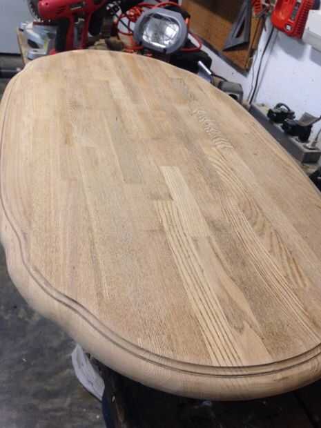 Después de descubrir que la tabla fue hecha de la madera real, empecé a la arena para determinar cuán bonito era. Como se puede ver, está hecho de madera de calidad. Sólo tuve que usar masilla para madera para una sangría pequeña que parecía una quemadura de cigarrillo. Pero después de lijar, incluso no puede verlo!