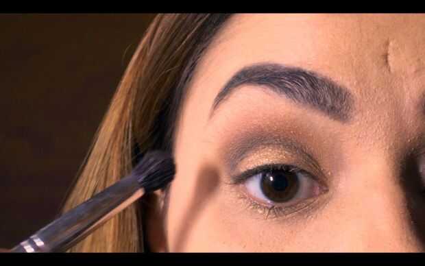 Con un cepillo de cúpula más grande que la anterior que utilizamos, tener una cálida sombra de ojos beige para mezclar a las líneas duras de Espresso. En mi caso, usé de STILA ingenio de los ojos son la ventana: paleta de mente.