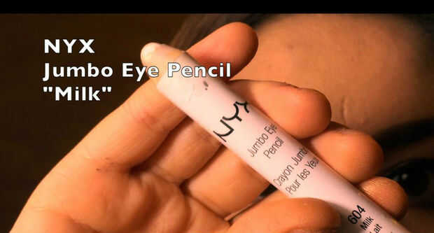 1) el Liner de Jumbo de NYX a la sombra de leche es un gran producto para usar como base para realzar colores de sombra brillante. En este caso, aplicar en la esquina de su ojo (no en la tapa) y mezclar con la punta de su dedo. (fotos 1 y 2)