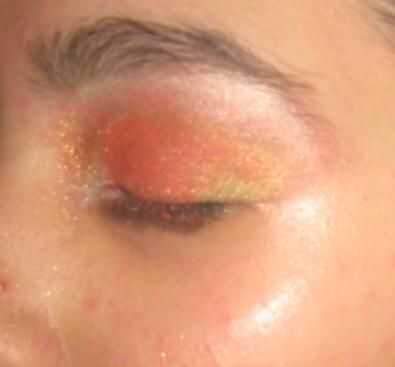 aplicar un color rojo en el centro de tu párpado y mezcla con el oro, he usado dos colores rojos.