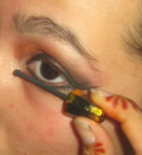 línea de su línea de agua con suruma, es un polvo negro usado por mujer árabe para hacer que sus ojos parezcan más grandes. no te preocupes si no tienes esto, línea de su línea de agua con lápiz del trazador de líneas de ojo negro.
