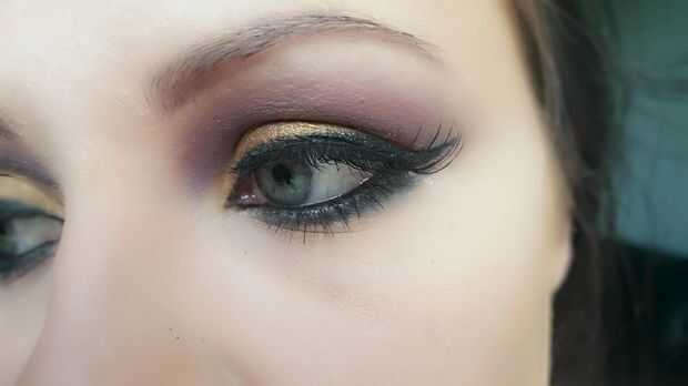 Maquillaje de ojos morado y oro corte pliegue (7 / 7 paso)