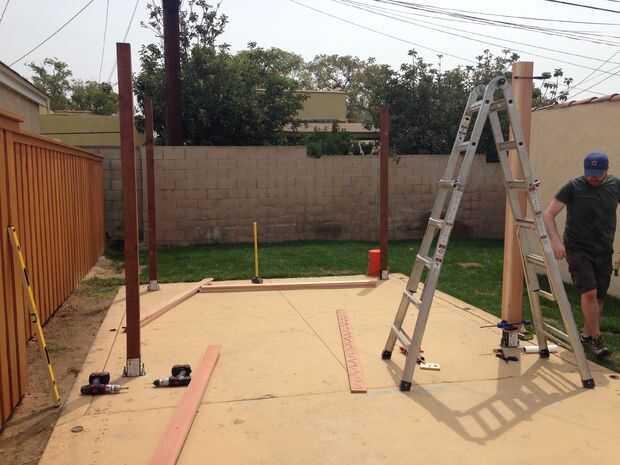 Bueno, para mí, aquí es donde la diversión parte realmente comenzó. Me encanta nada que ver con carpintería de madera y esta fue mi primera vez para la construcción de una pérgola. Si usted está familiarizado con una pérgola, es (normalmente) estructura de madera que se coloca fuera de que no te protegerá del sol, viento, lluvia, nieve o realmente cualquier cosa. Pero se ve genial y ayuda a definir un espacio.