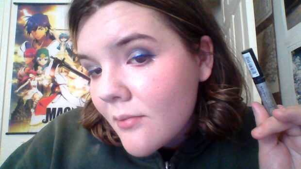 Decidí lanzar un brillo plateado en forma de cristal líquido de NYX en cristal plata. Se basó en tres latigazos plateados debajo de cada ojo e hizo una leve línea doble sobre el trazador de líneas azul que había colocado ya. Aunque no resultan en la foto, yo también se separó un poco en cada mejilla, se mezcla por lo que sólo crearía un sutil brillo cuando la luz golpea.