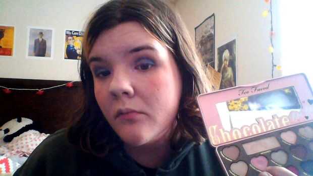 A continuación, rellene en el tercio interno de los ojos con cualquier sombra de color rosa que tienes; He utilizado algodón de azúcar de paleta de Chocolate Bon Bons de demasiado ante. Swing el color alrededor de la esquina interna de los ojos y en el interior tercera de la línea de pestañas inferior también.