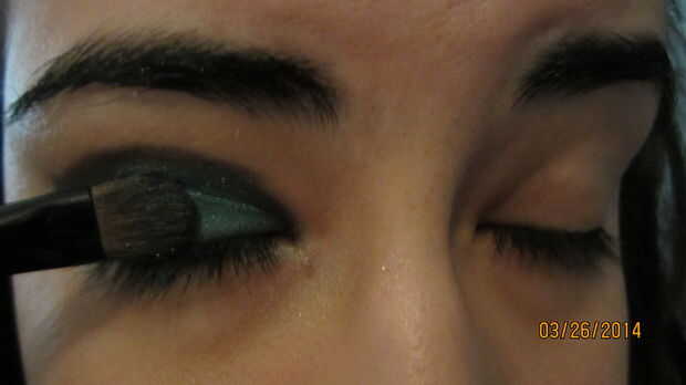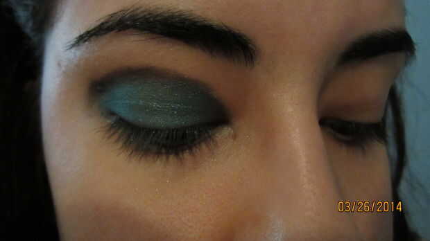 2. mezcla el teal y el sombreador de ojos negro donde ambos cumplen.