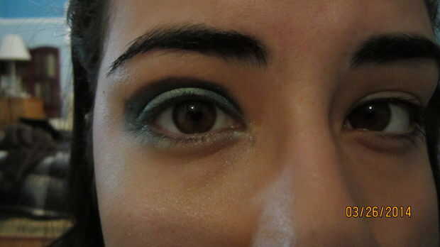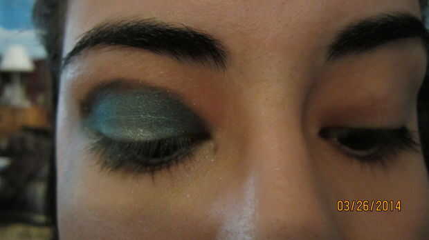 3. mezcla el oro/blanco brillo y el color teal juntos sin embargo no totalmente se mezclan los dos.
