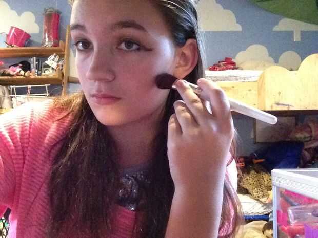 Cepillo en las manzanas de tus mejillas. Estoy usando mi rubor e.l.f. y bronceado pincel.