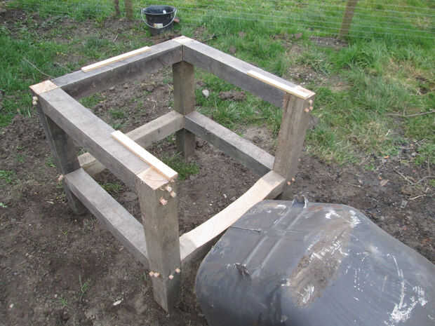 El trono se fija en su base por 2 tornillos pesados, el sofá se mantiene en su lugar sólo por gravedad - Note la zona corte (a la izquierda del perro) y las 3 lates en el perímetro para evitar que se mueva el wole.