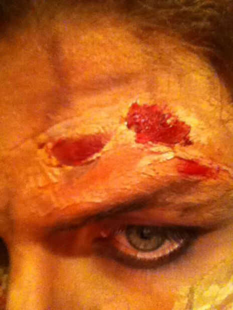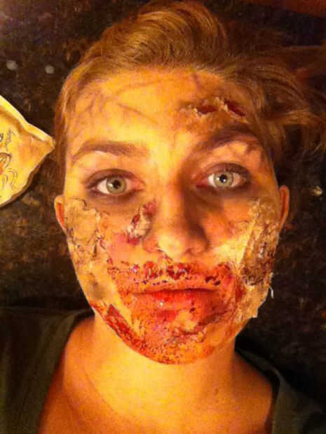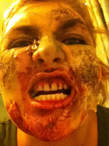 Para aplicar, solo sumergir tus dedos en ella y listo loco! Es mejor decirlo sólo alrededor de la boca, donde la sangre sería si fueras a tomar un bocado de alguien.