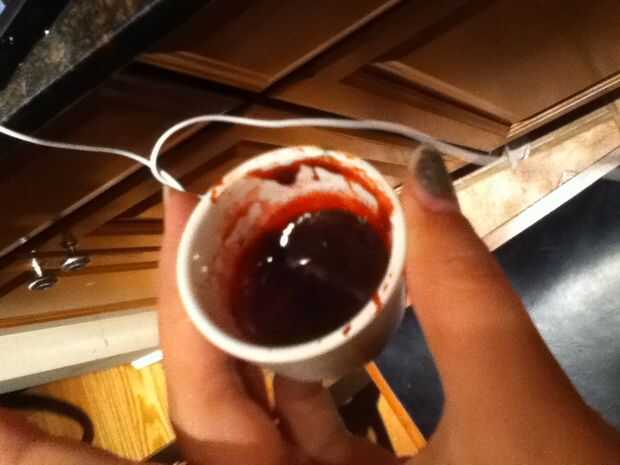 Para un rápido y fácil de la sangre falsa, mezcla una cucharada de miel con 5 gotas de colorante alimentario rojo y 1 gota de verde. Añadir 1 cucharadita de cacao en polvo.