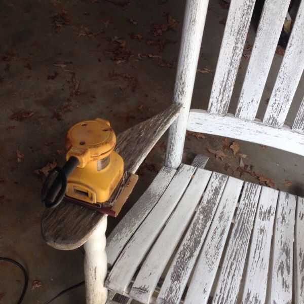 Empecé usando una lijadora de Palma y lija 100 trabajando hasta un grano más fino (220). Con la silla siendo tan detallada y redondeado mucho lijado a mano era necesaria.