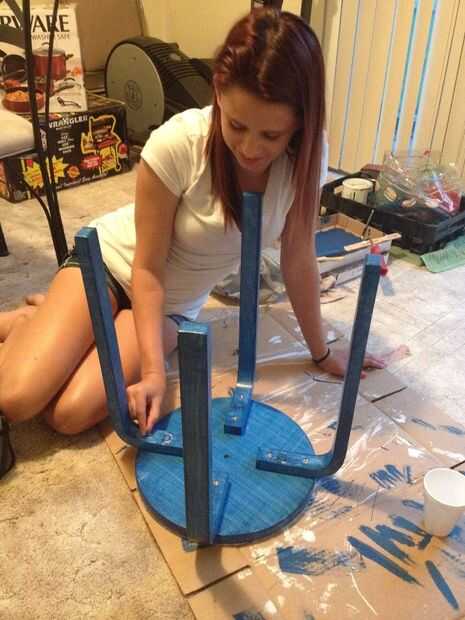 4. Corte la parte superior y utilizar cola para madera para fijar fieltro estampado en la parte superior de las heces.